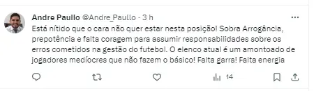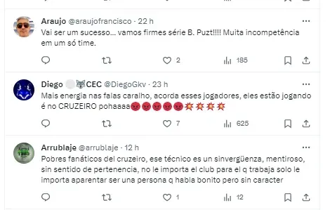 A torcida da Raposa não está muito satisfeita com a decisão da diretoria em ter definido Paulo como o comandante da equipe. Nas redes sociais, muitos criticaram a decisão.
