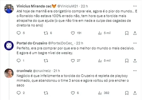 Nas redes sociais, torcedores do Cruzeiro também se manifestaram, em apoio ao jogador. Bruno Rodrigues, é um dos principais atletas do setor ofensivo da Raposa.