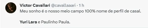 Muitos torcedores comentaram nas redes socais que aprovariam se o meio-campo do Vasco fosse formado por Yuri Lara e Paulinho, um dos destaques da equipe nesta temporada, e que o ex-atleta seria sem dúvidas titular da equipe. “Busco no aeroporto” e “Yuri Lara, Paulinho e Marlon Gomes, ‘meiuca’ ideal para 2024”, foram algumas publicações no Twitter.