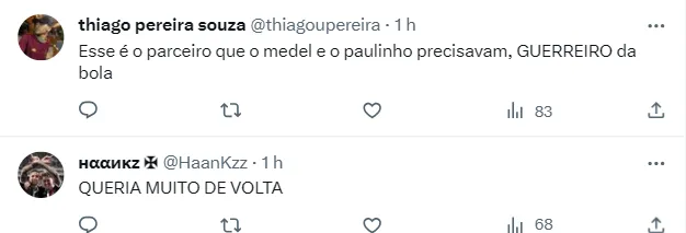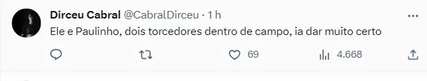 Com a declaração do jogador que é muito identificado com o Clube, a torcida não perdeu tempo e deu ‘pitacos’ sobre um possível retorno do atleta ao Vasco. Na disputa do Campeonato Brasileiro Série B do ano passado, o jogador caiu nas graças da torcida e era chamado de “pitbull da colina”.