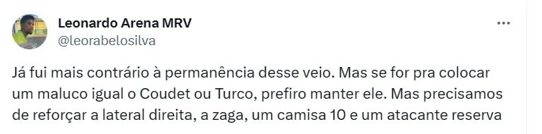 No momento, o Galo ocupa a quinta colocação, com 52 pontos conquistados – um a menos que o Grêmio, o primeiro dentro do G-4. Diante deste cenário, é debatida uma possível permanência de Felipão em 2024.
