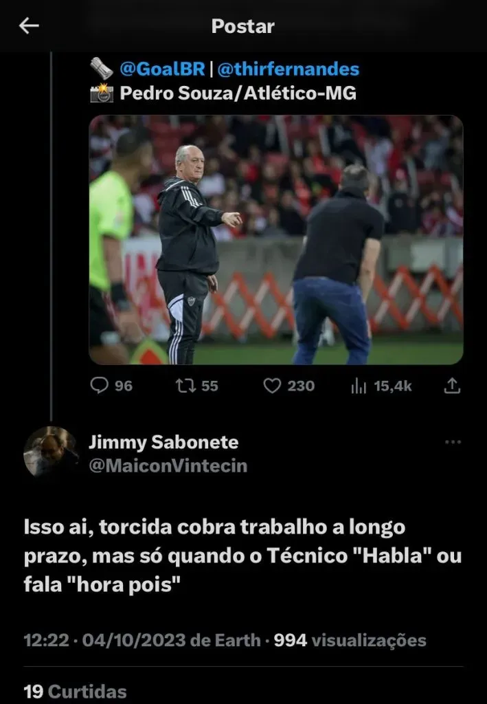 No Twitter, a torcida do Atlético repercutiu bastante a novidade, já que para uma boa parte, um novo treinador chegaria para o início de 2024: (SIC) “Desperdício de tempo, o bom momento é apenas de resultado, o desempenho está muito abaixo. Em 2024 ele será demitido antes do campeonato brasileiro começar, quando perder 1 ou 2 jogos na fase de grupos da Libertadores”; “O ano de 2024 já vai acabar antes mesmo de começar então”. Obviamente, também houve quem apoiasse: “Isso aí, torcida cobra trabalho a longo prazo, mas só quando o Técnico “Habla” ou fala “hora pois“, disse outro atleticano.
