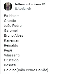E diante desse duelo complicado mesmo em casa, a torcida se manifestou nas redes sociais para definir qual seria o time ideal para encarar a equipe carioca. Muitos foram unânimes sobre a maioria das peças que Renato deve levar a campo nesta quarta-feira, e tiveram opiniões divergentes sobre quem deve estar no ataque.
