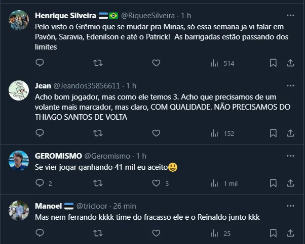 No início do ano, os mineiros desembolsaram cerca de R$ 8 milhões para tirá-lo do Colorado. Vale frisar que, com contrato até o fim de 2024, o Grêmio teria que gastar para contratá-lo. Até por isso, o nome não foi bem visto pelos torcedores do Imortal.