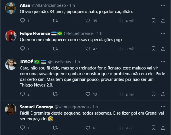 Mesmo assim, como a próxima temporada deve contar com o time presente na Copa Libertadores, a expectativa dos gremistas é a contratação de novos reforços para o plantel.