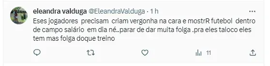 Outro torcedor acabou seguindo a mesma linha na rede social: “Injusto não ganharem folga após a grande exibição de ontem!”, disse. Houve ainda quem não teve cerimônia e criticou veementemente Renato Portaluppi: “Sempre vem com as mesmas desculpas ‘eram as peças que eu tinha’. Pra que tirar o melhor em campo (Besozzi) para botar o Ferreira? Por que demorou pra tirar o Nathan? Pra que escalar o Fábio na lateral?”, criticou um internauta.