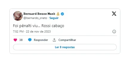 Diante disso, a torcida vascaína detonou o jogador nas redes sociais e não deixou de criticar a postura de Rossi, que não foi bem no jogo, e de quebra, acabou sendo expulso quando já estava no banco de reservas, após ser substituído.
