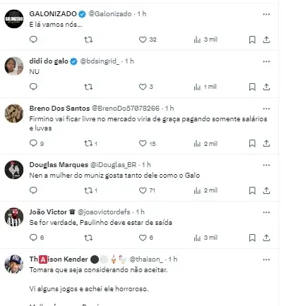 Diante disso, o time mineiro deve fazer a alegria do torcedor com contratações. Porém, para manter o alto nível no mercado, urge a necessidade de também manter atletas de alto nível que estão no elenco, o maior exemplo disso é Paulinho, esse cara precisa ser mantido.