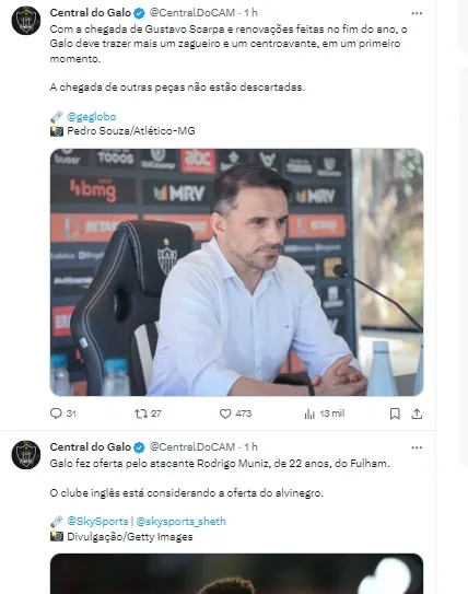 A notícia sobre Munzi foi dada pelo jornal inglês Sky Sports. Além disso, o GE também trouxe à tona os novos alvos do Galo para o mercado: um zagueiro e um centroavante.