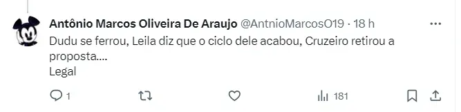 Pelas informações, Dudu só ficou balançado em permanecer no Palmeiras por conta da conversa com a torcida organizada, conversa que por sua vez, só ocorreu devido a divulgação do post do Cruzeiro.