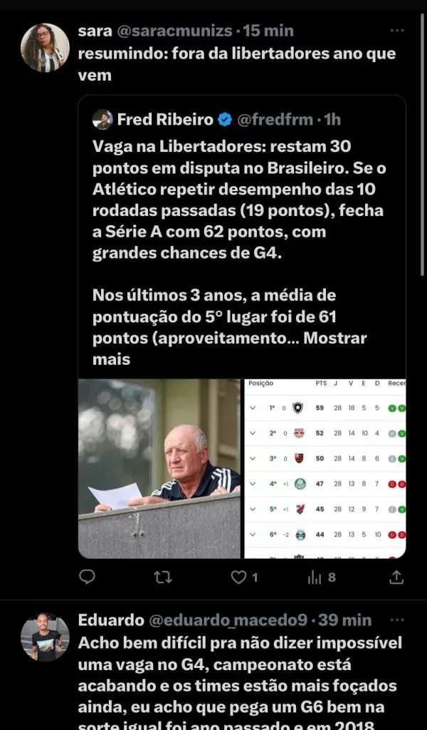 Acredita que o Galo conquiste uma vaga direta na Libertadores em 2024?