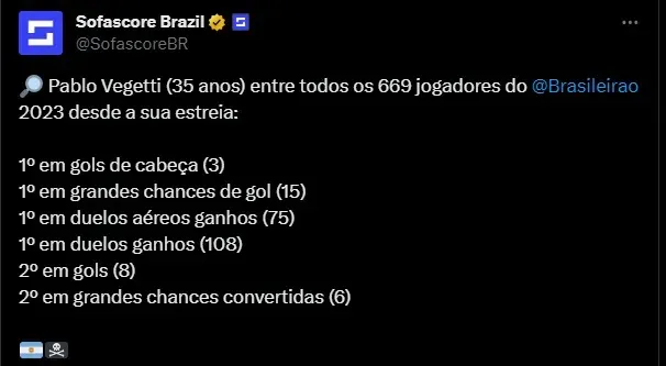 E o atacante, camisa 99, vem sendo um grande destaque da equipe de São Januário desde sua chegada, E quem fala isso são os seus números. Confira como é a estatística de Vegetti.