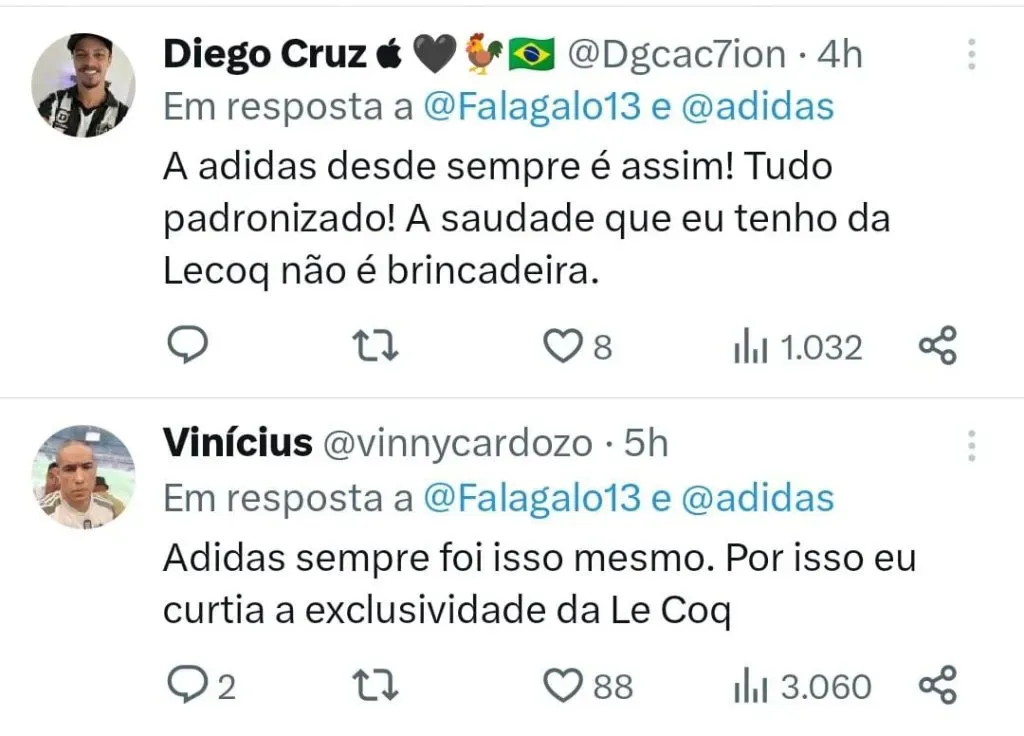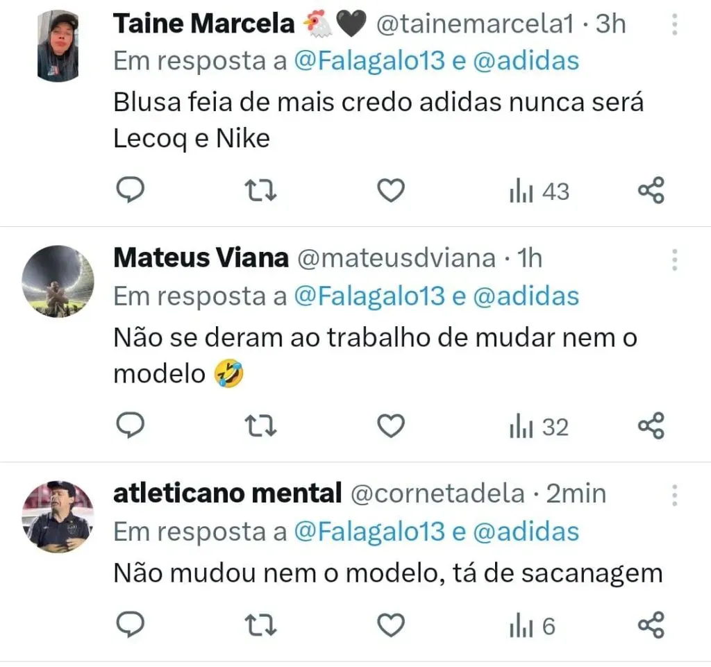 É claro que os torcedores não deixaram o detalhe passar despercebido e trataram de fazer a comparação nas redes sociais. Muitos internautas apontaram a deficiência da Adidas em desenvolver um design diferente para as suas camisas.