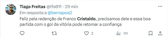 Cristaldo está recuperando o futebol que os gremistas se acostumara a ver?