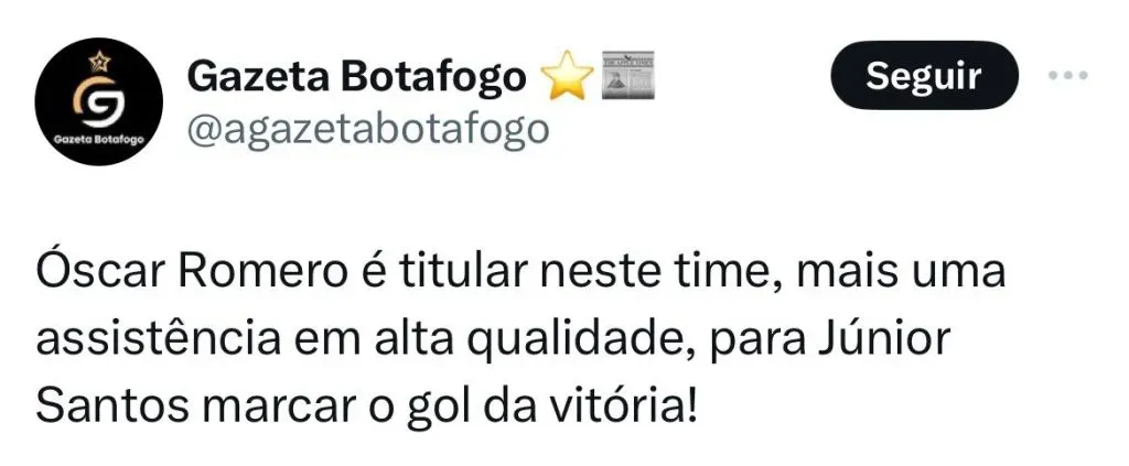 Além de Júnior Santos, quem ajudou o Botafogo a sair com o resultado positivo do Engenhão foi o meio-campista Oscar Romero. O armador afirmou estar super feliz com a evolução que vem tendo nos últimos jogos desde a chegada de Arthur Jorge.