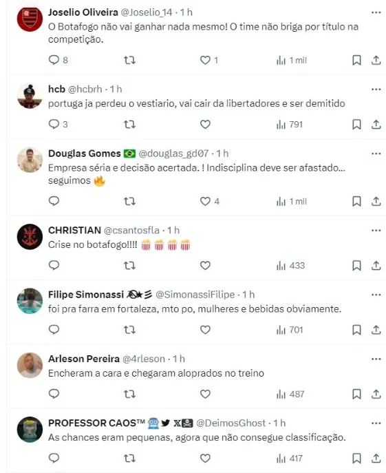 Segundo o portal, o Botafogo já resolveu a questão internamente e decidiu apenas afastar a dupla do jogo contra o Universitario, do Peru, que acontecerá em Lima.