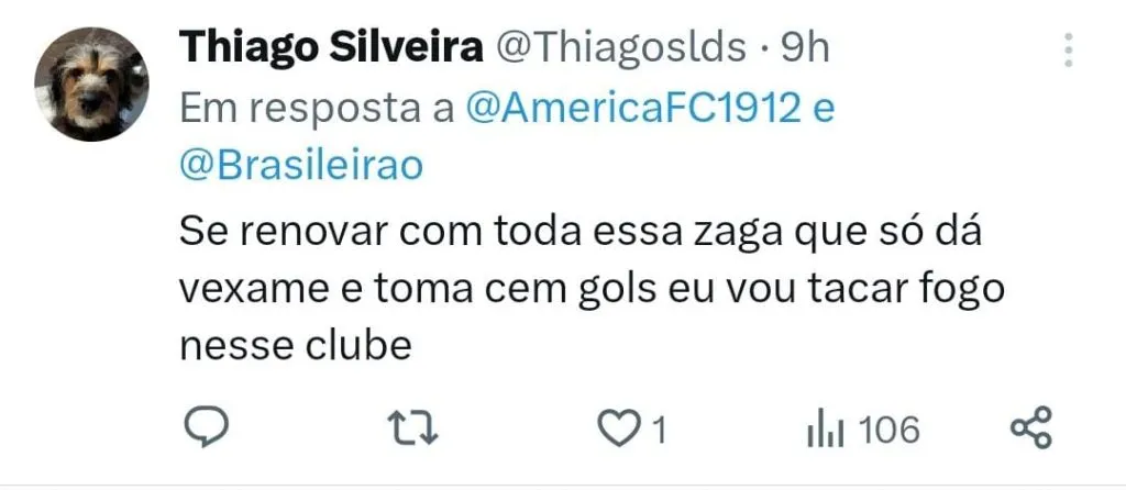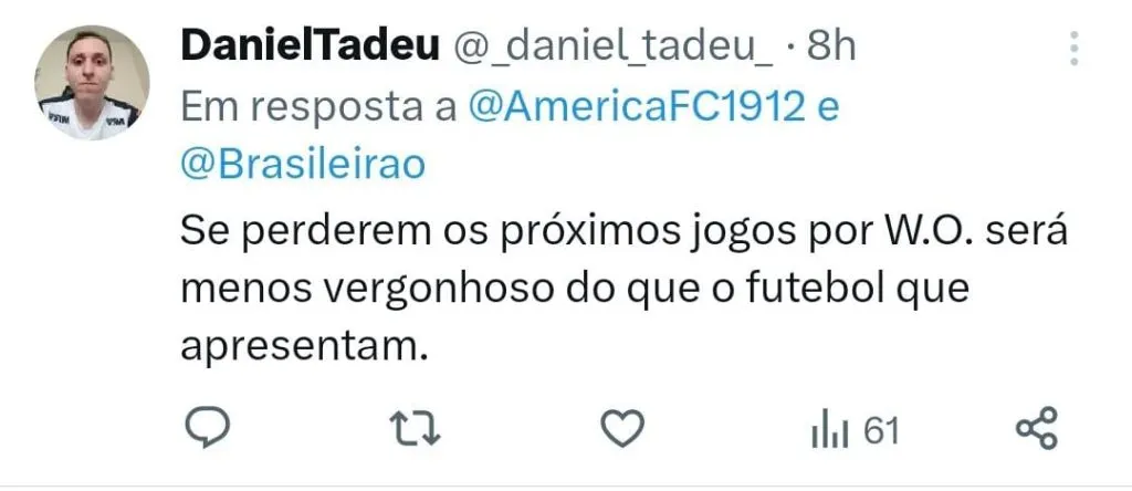 Do outro lado, o América-MG é o lanterna do torneio e está matematicamente rebaixado e agora só cumpre tabela. Na 20ª colocação, o Coelho soma 21 pontos e vem de uma derrota por 3 a 0 diante do Flamengo.