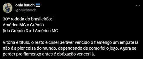 Nesta quinta-feira, o Campeonato Brasileiro retorna após o intervalo das Datas FIFA com um confronto entre Grêmio e América Mineiro. A partida acontecerá às 19h, na Arena do Grêmio, em Porto Alegre. Para o Grêmio, a vitória é essencial para manter sua posição no G6 e buscar uma possível entrada no G4, enquanto o América Mineiro precisa vencer e torcer por resultados favoráveis para sair da zona de rebaixamento.