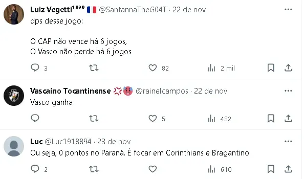 Enquanto isso, o Vasco, 15º colocado, busca se distanciar da zona de rebaixamento, com apenas três pontos de vantagem sobre o Z-4.