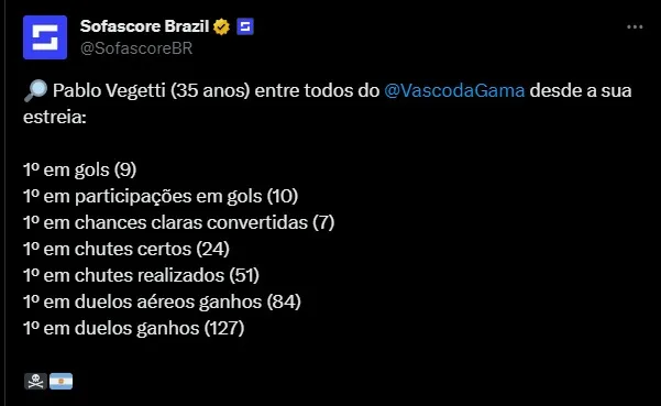 E outro fator deixa o torcedor do Gigante da Colina feliz. Os números de Vegetti empolgam na luta contra o rebaixamento. E o jogador voltou a balançar as redes após um período de seca.