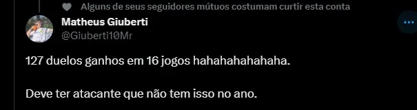 1º em duelos ganhos (127)