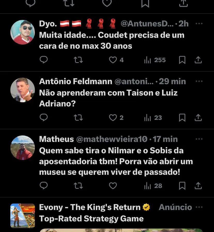 A torcida se dividiu em relação ao retorno do centroavante: (SIC) “Só essa dupla nós daria caneco, qualquer outra invenção do Barcellos não vai dar certo”; “Gente, o ano é 2023 e não 2011 mais”, foram os comentários.