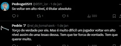 Sobre sua recuperação física, Patrick expressou otimismo: “Estou me sentindo cada vez melhor. Estou me cuidando para me sentir 100%, tratando todos os dias. Não vejo a hora de poder voltar a jogar e estar bem para jogar.”