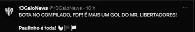 Após o jogo, o artilheiro atleticano também falou sobre a partida em si contra os hermanos fora de casa. Ele destacou que o adversário foi bem duro em campo, mas que o Alvinegro mereceu a vitória conquistada na Argentina.