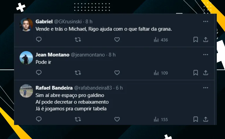 Não à toa, mesmo em meio à saída de outras peças e diante de um cenário caótico no Brasileirão, a maior parte da torcida aprova o negócio. Isto é, gostaria da negociação envolvendo o camisa 21.