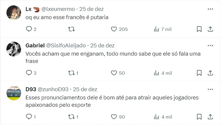 “A minha tristeza por deixar o (Olympique de) Marselha foi rapidamente varrida pelo amor dos torcedores (do Vasco). A paixão deles, às vezes, é irracional. Mas, se eu tinha dúvidas, elas acabaram na minha chegada. O Brasil é mesmo o país do futebol“, afirmou durante entrevista ao jornal francês Le Monde.