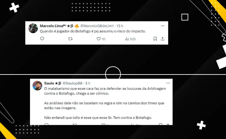 Após o jogo de ontem, a torcida botafoguense fez muitas críticas aos zagueiros Lucas Halter e Alexander Barbosa e mais dois jogadores. Mas também aconteceu reclamações com a arbitragem.