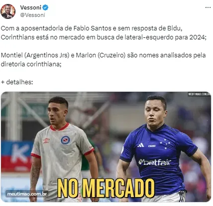 Segundo o Meu Timão, o treinador Mano Menezes aprovou o nome do defensor do Cruzeiro para reforçar o elenco do Corinthians para a temporada de 2024. Apesar da campanha do time mineiro ser bem irregular, Marlon vem se destacando e, principalmente, no primeiro turno foi muito bem.