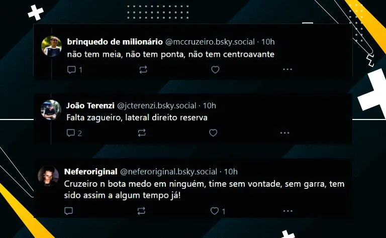 Essas reações evidenciam a pressão sobre a diretoria do Cruzeiro para agir rapidamente no mercado de transferências e reverter o cenário atual, onde a equipe não vem apresentando um desempenho à altura das expectativas.