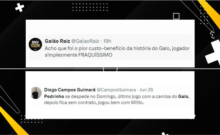 Este domingo marca a despedida de Pedrinho do Atlético-MG. O meia, cujo contrato de empréstimo com o Galo expira no fim deste mês, fará sua última partida pelo clube mineiro contra o Atlético-GO. Com o jogo sendo o último de junho, Pedrinho se despede do Atlético-MG após essa rodada.