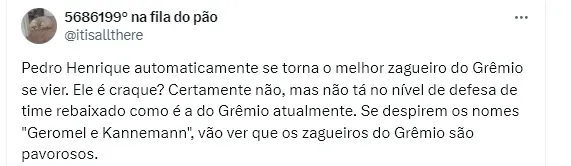 O camisa 34 nunca esteve tão perto de ser reforço do elenco de Renato Portaluppi e chegaria com status de titular. Geromel e Kannemann, ídolos da torcida, já não são mais unanimidades.