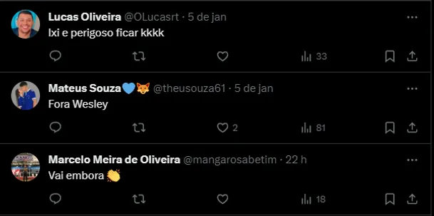 Torcida perdeu a paciência com Wesley