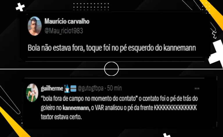 Através do X, antigo Twitter, muitos adeptos do Imortal se mostraram contrariados e afirmaram ter sido pênalti: “O escanteio foi marcado pelo toque do goleiro com a mão na bola. O goleiro toca com a mão na bola no momento que toca no Kannemann. Pênalti e fim de papo”, disse um internauta.