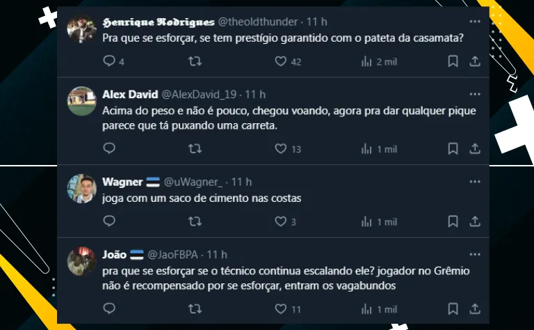 Tanto é que, mesmo com o empate por 2 a 2 contra o Corinthians tendo sido marcado pela polêmica de arbitragem, os gremistas foram até a web e debateram sobre o momento de Pepê, criticando demais o atleta.