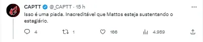 Após a situação do treinador vazar na web, a torcida não se iniciou e criticou ainda mais a decisão. “Isso é uma piada. Inacreditável que Mattos esteja sustentando o estagiário.”, “Eles já vem contando essa piada há bastante tempo, ninguém mais está nem aí mesmo, o cara já f* o ano, causou prejuízo incalculável. (…) desanimador!!”, “Esse cara é pior que o Valentim, e olhe que achei que isso seria muito difícil”, “É simplesmente inacreditável (…) Algum coxa-branca colocou uns eletrodos na cabeça do Mattos e do Petraglia e os está controlando remotamente. Não dá pra entender”, “Vai toma no c*! Como não vê motivos pra mudança? Quais motivos eles querem?”, “O que precisa acontecer para esse f* sair?”, “Vergonha!”, foram alguns comentários do torcedor do Athletico, no Twitter.