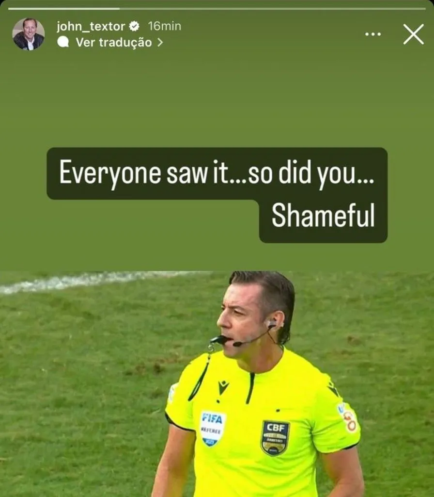 Porém, na visão do lado botafoguense foi falta e que deveria ser marcada, algo que poderia ter evitado o gol do Rubro-Negro. Nas redes sociais, o dono da SAF do Botafogo, John Textor, não poupou reclamações ao apito de Claus.