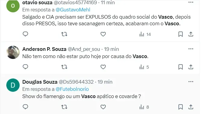Ao procurar Souza, para saber das tratativas com o Vasco, Nicola disse: “Repassei essa pergunta a ele (o Souza), que disse que até agora não foi procurado por ninguém do Vasco. Inclusive, o Souza esteve com seus no Maracanã neste domingo, para assistir o Cruzmaltino diante do Flamengo”.