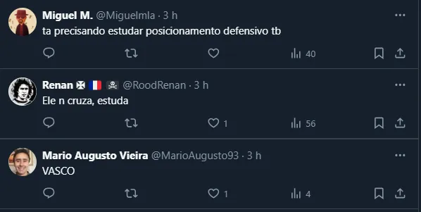 Dito isso, vale lembrar que Piton e todo o elenco do Vasco vivem um período de adaptação, já que Álvaro Pacheco iniciou seu trabalho após a partida decisiva contra o Leão. O próximo jogo será contra o Flamengo, no dia 2 de junho.