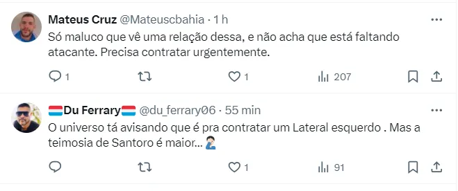 O que dizem os torcedores do Esquadrão nas redes sociais