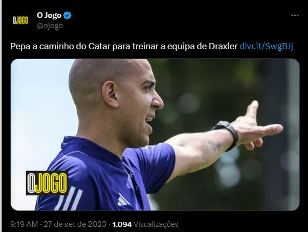 Segundo as informações do veículo português, Pepa viajará em breve para fechar com a equipe do Catar como substituto do montenegrino Nebojsa Jovovic, que deixou o clube em 4 de setembro. Com 42 anos, Pepa soma passagens por Al-Tai, Feirense, Moreirense, CD Tondela, Paços de Ferreira e Vitória SC no futebol português. Na Raposa, foram 25 jogos, com sete vitórias, oito empates e dez derrotas.