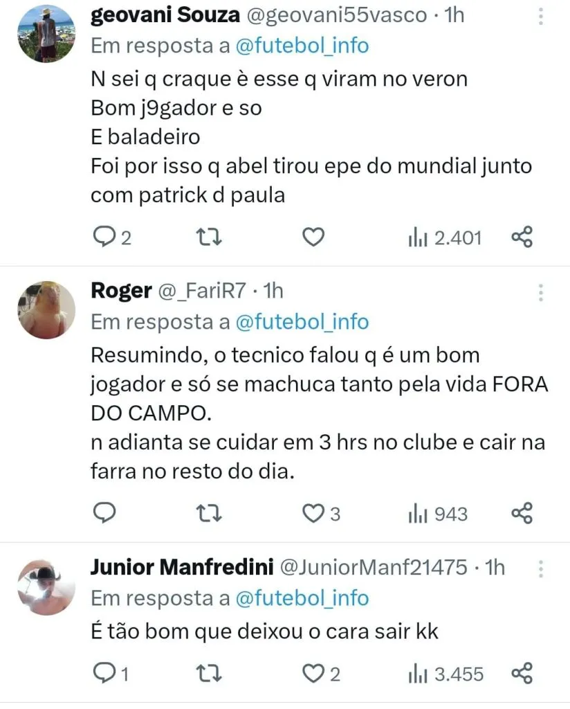 “Esteve sistematicamente lesionado. Temos um departamento médico, preparadores físicos, que trabalham muito bem a recuperação dos jogadores, e depois cabe ao jogador também dar resposta.”.