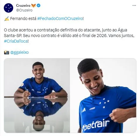 Neste contexto, entram os olhares para a base e nesta terça-feira (21), o Cruzeiro deu um passo importante que certamente vai reverberar em reforço na próxima temporada. Trata-se da situação do atacante Fernando, de 18 anos, que brilhou no Sub-20 Celeste.