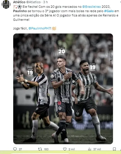 Com 8 gols marcados em 9 partidas disputadas no novo estádio, Paulinho é o artilheiro da Arena MRV, algo que ele também ‘previu’ e conquistou. Para 2024, essa história só pode melhorar a cada jogo.