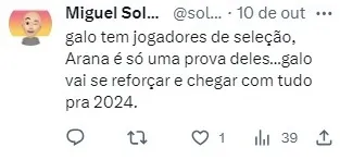 Depois da partida com a amarelinha, contra a Venezuela, o jogador passou a ser ainda mais observado. Ainda de acordo com o 90min, equipes como Brentford, West Ham e Wolverhampton, estavam de olho no lateral-esquerdo do Atlético-MG. O West Ham, é a equipe que mais acompanha Arana, o jogador tem contrato com o Galo, até o final de 2024.