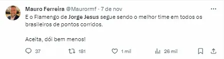 Jorge Jesus não somente é lembrado pelo trabalho prestado ao Flamengo, mas o profissional é frequentemente pedido de volta pelos torcedores do time carioca. A sequência sem taças continentais quebrada pelo português marcou uma geração no futebol brasileiro.
