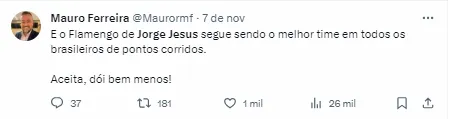 A passagem de Jorge Jesus pelo futebol brasileiro deixou marcas em torcedores de diferentes equipes. Apesar das conquistas do treinador no país terem se concentrado no Flamengo, até hoje os rivais guardam na memória o fenômeno alcançado pelo Mister.